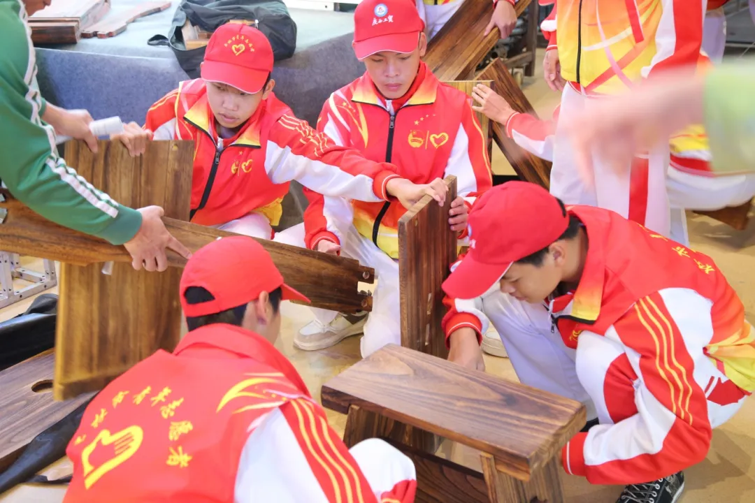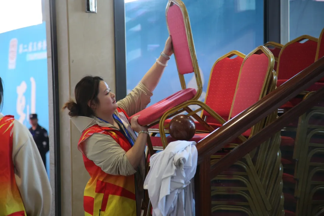 广西工贸高级技工学校青年志愿者“小青芒”负责开幕式现场布置、活动道具搬运、协助活动彩排等工作,助力开幕式的顺利举办。