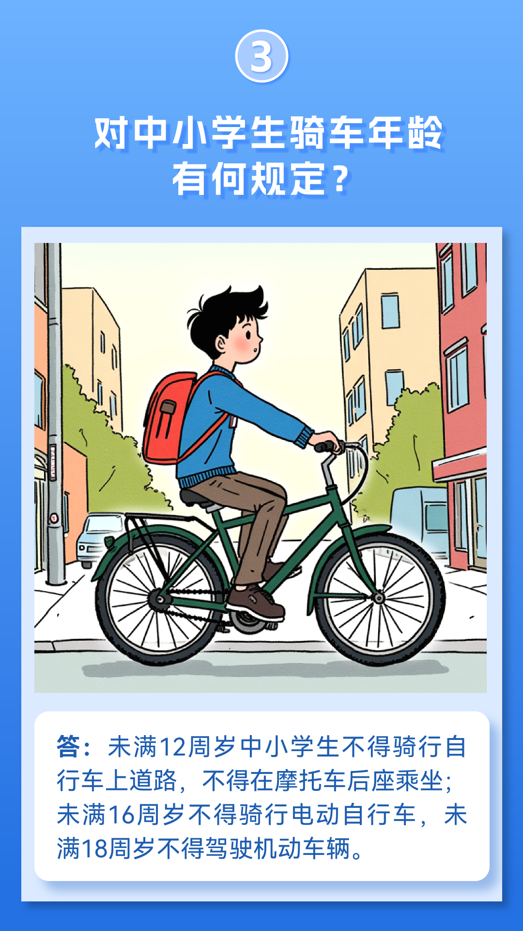 今年12月2日是第十三个12·2“全国交通安全日”,为做好宣传工作,根据《道路交通安全法实施条例》《校车安全管理条例》《学生交通安全提升行动计划(2023-2026)》有关内容,教育部基础教育司、公安部交通管理局共同编写了“中小学交通安全十问”,供中小学校和学生学习参考,希望大家一起,携手共创文明交通环境。