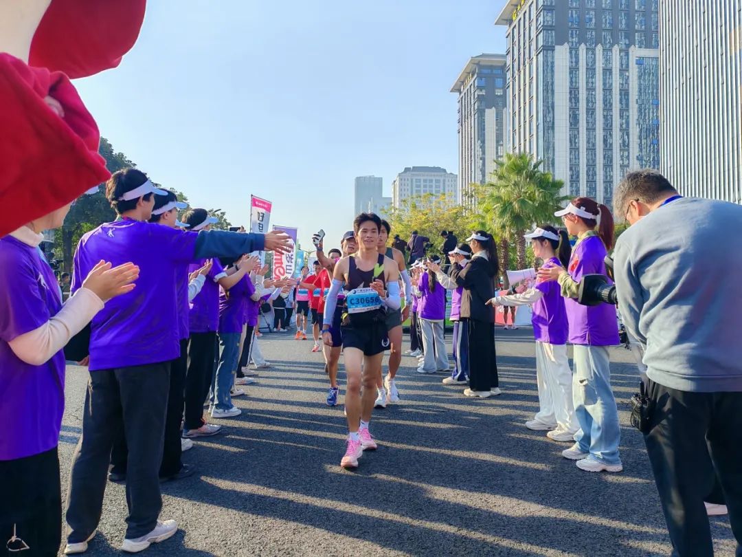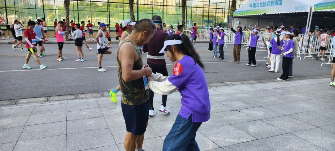 随着发令枪声的响起,参赛选手们如潮水般从起点涌出,与此同时,“小青芒”也迅速投入到紧张的工作中。他们的身影遍布起终点、沿途的各个补给站、医疗观察点以及赛事关键岗位,为参赛选手提供参赛检录、赛道指引、饮水及食品补给等一系列贴心服务。