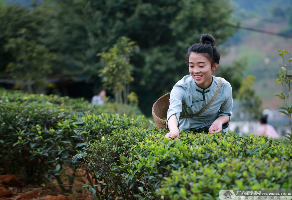 采茶女在采摘六堡茶(资料图)。记者 何学俏 通讯员 潘绍姗 摄