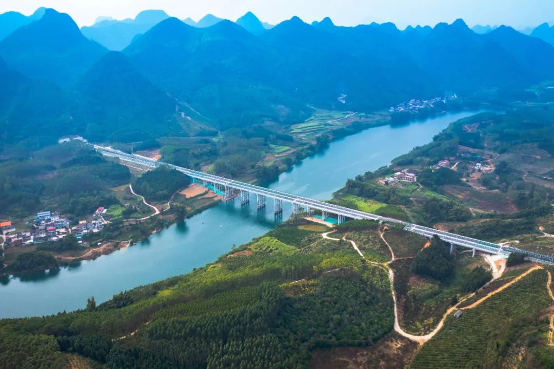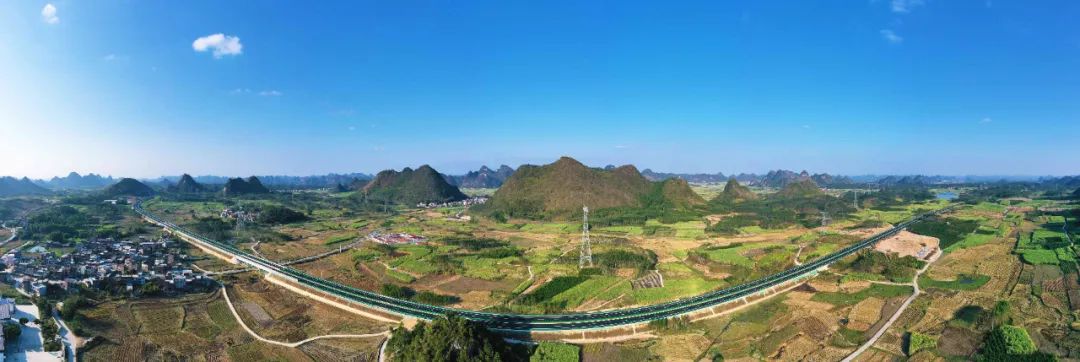 宜州西高速主线最长桥梁高岭大桥穿越田野。张彬琳 摄