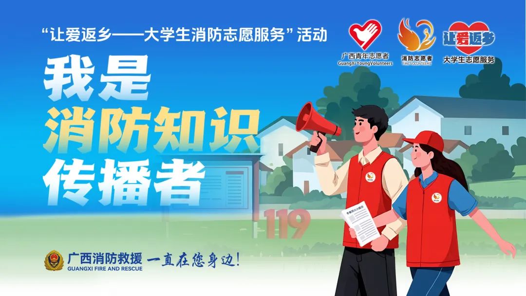2025年寒假期间,广西消防救援总队与共青团广西区委,将在全区范围内开展“让爱返乡——大学生消防志愿服务”活动(活动时间:1月20日至2月20日)。我们已在“桂志愿”平台发布了一系列志愿服务项目,期待你的加入!