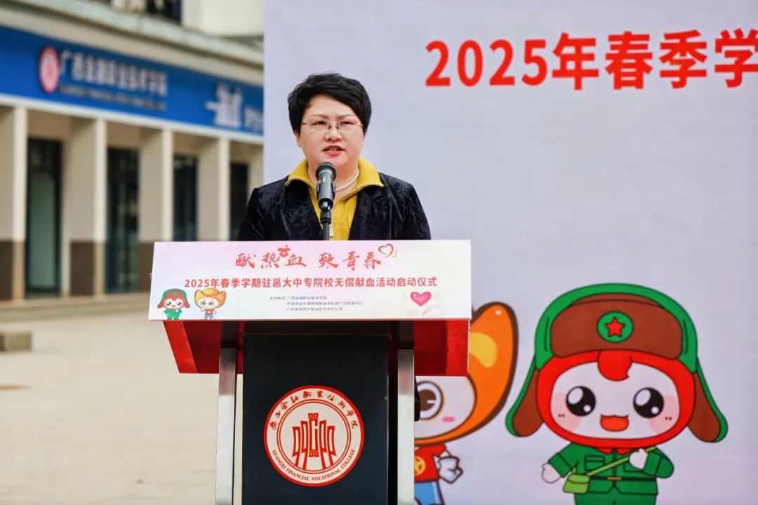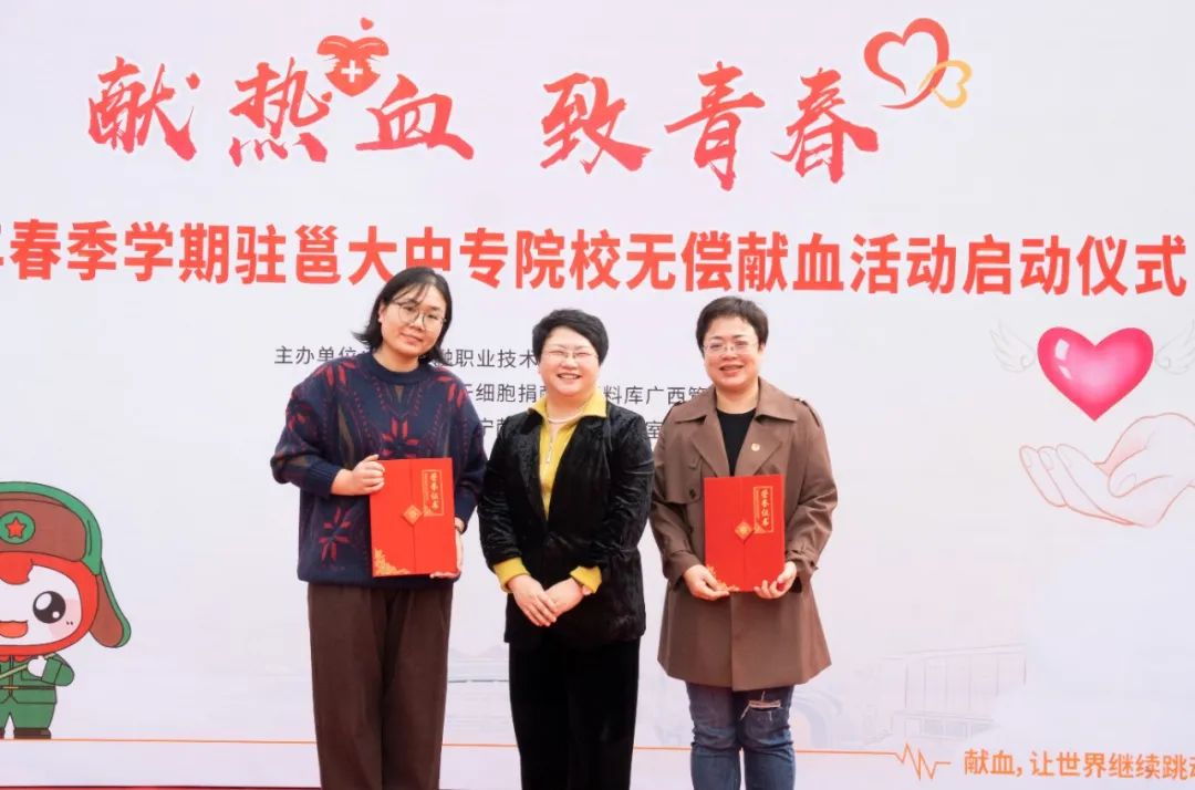 南宁市卫生健康委员会四级调研员陆燕同志在致辞中表示,多年来,驻邕大中专院校师生积极响应无偿献血号召,用实际行动诠释社会责任与担当。正是因为有了献血者的每一滴热血,他人的健康和生命才得以延续。同时也呼吁更多驻邕院校充分发动在校学生,奉献青春热血,以实际行动传递正能量,展现使命担当。