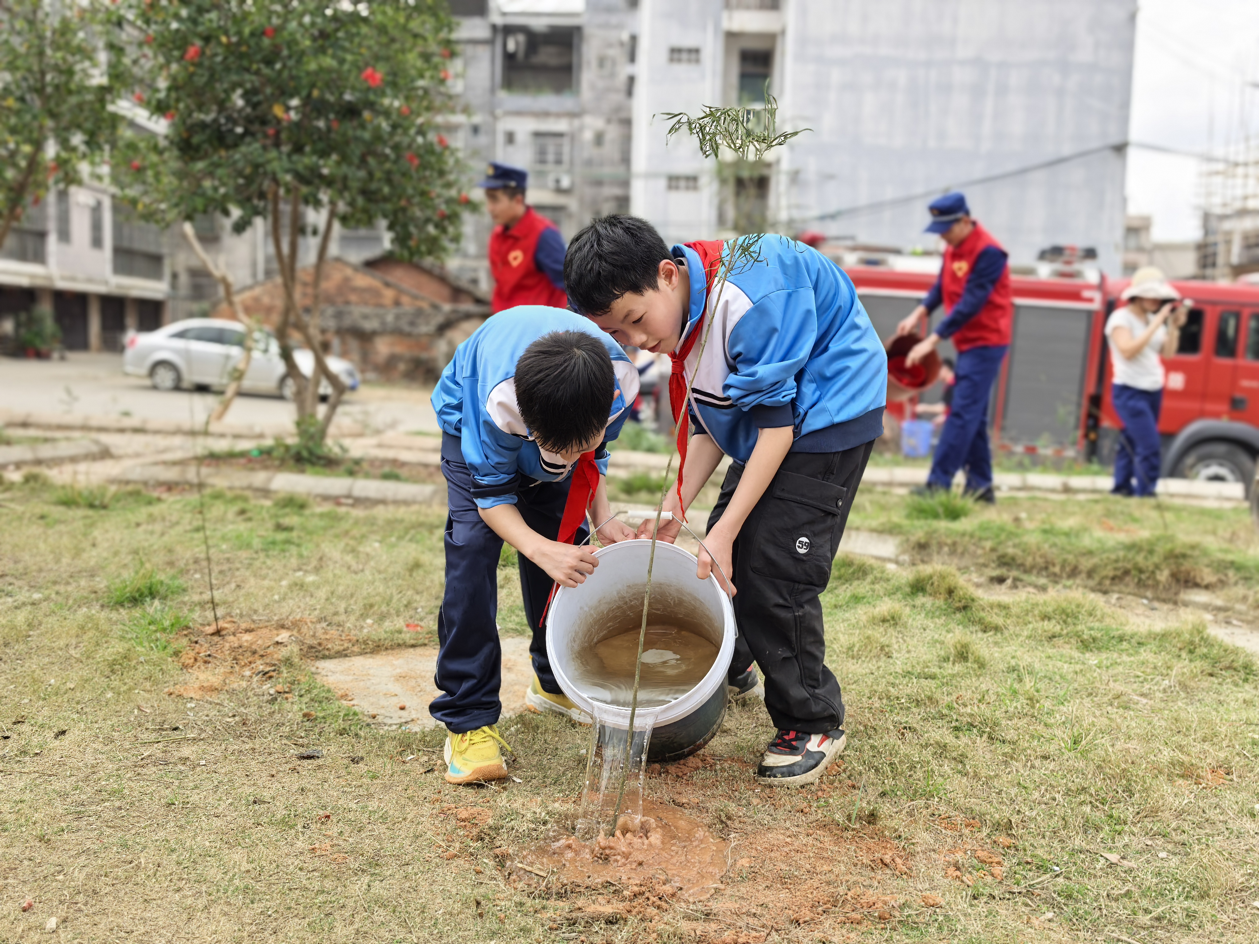 “每棵树都是未来的希望,能亲手为家乡披绿装,特别有意义!”来自华山学校的少先队员将一株相思木幼苗小心放入土坑后说道。消防员边示范植树边科普:“植树和灭火都是守护家园的方式,今天我们种下的是抵御水土流失的‘绿色防线’,大家培土时要压实周边,就像我们构筑防火隔离带一样,既要稳固根基,也要预留生长空间。”现场化身自然课堂,专业技巧与生态知识在劳动中传递。