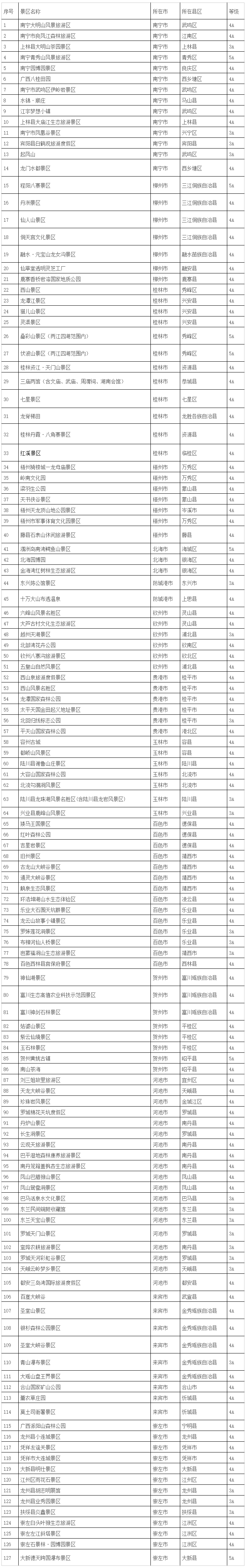 广西国家A级旅游景区“一票3日使用制”景区名单