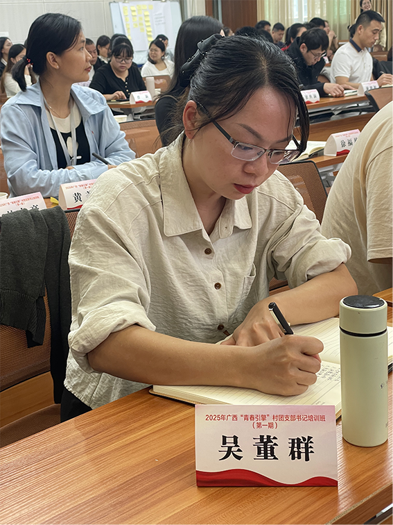 “作为恭城北溪村团支部书记和返乡创业青年,此次培训让我更深入思考青年工作。结合五年自媒体创业经验,我将以新媒体凝聚青年力量。身为政协委员及女能人联谊会秘书长,计划发起"青企携手"行动,联动资源开展新媒体培训,并争取电商办开放免费短视频培训名额。四天学习让我深知,团支部书记应是凝聚青年的"路由器",未来将以创业精神把团支部打造成青年想得起、靠得住的成长港湾。”