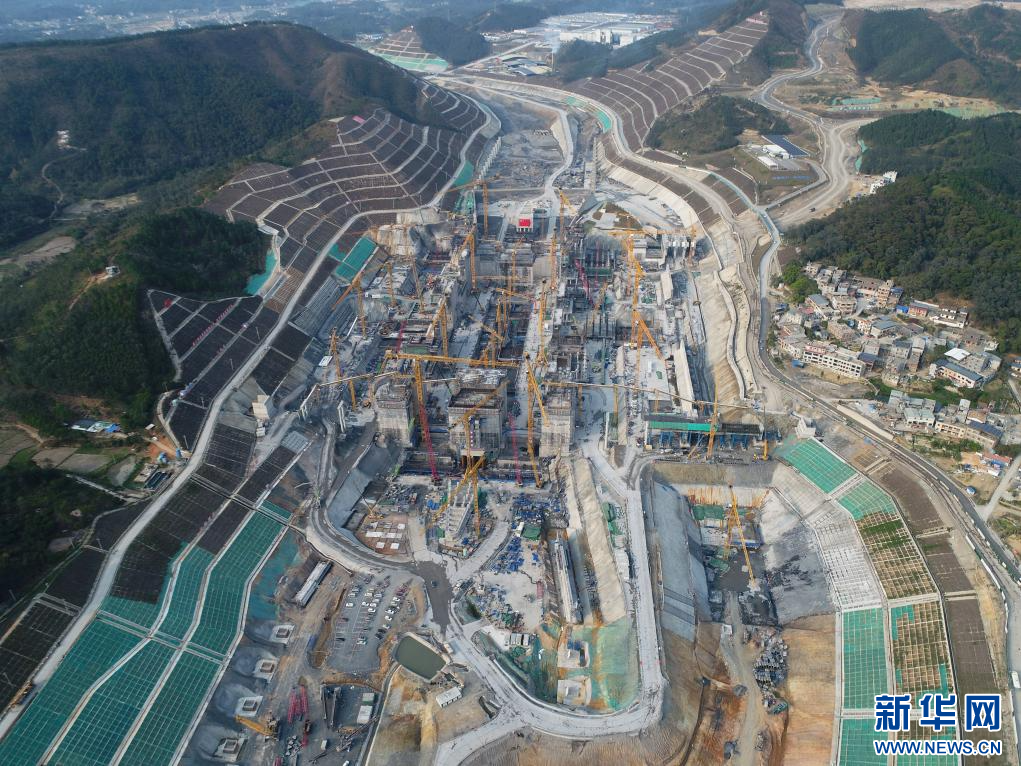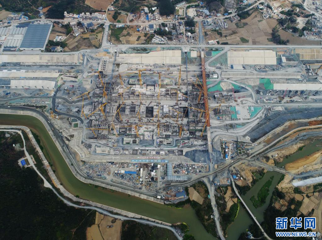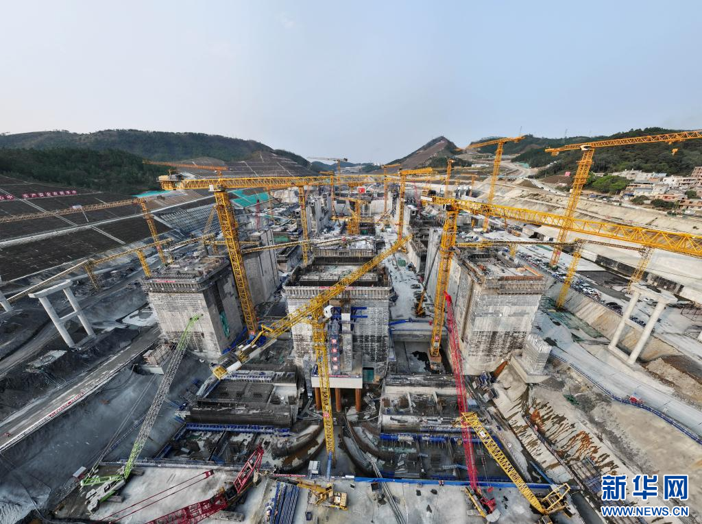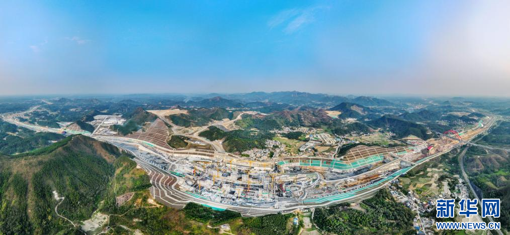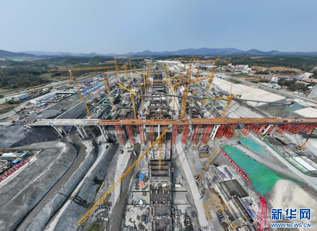 这是3月19日拍摄的广西平陆运河马道枢纽施工现场(无人机全景照片)。新华社记者 周华 摄