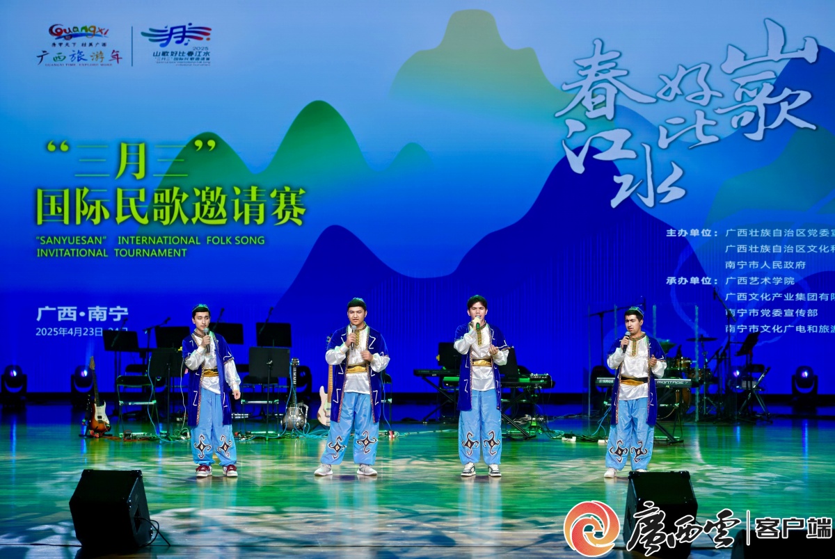 4月23日,由自治区党委宣传部、自治区文化和旅游厅、南宁市人民政府联合主办的“山歌好比春江水——2025年‘三月三’国际民歌邀请赛(高校组)”在广西民族剧院拉开序幕。本届大赛以“民歌无国界,山水有相逢”为主题,吸引了来自全球五大洲的俄罗斯、韩国、马来西亚、波兰、摩洛哥、赞比亚、土库曼斯坦、澳大利亚等22个国家的66名选手参赛,共同唱响民族音乐的时代强音。