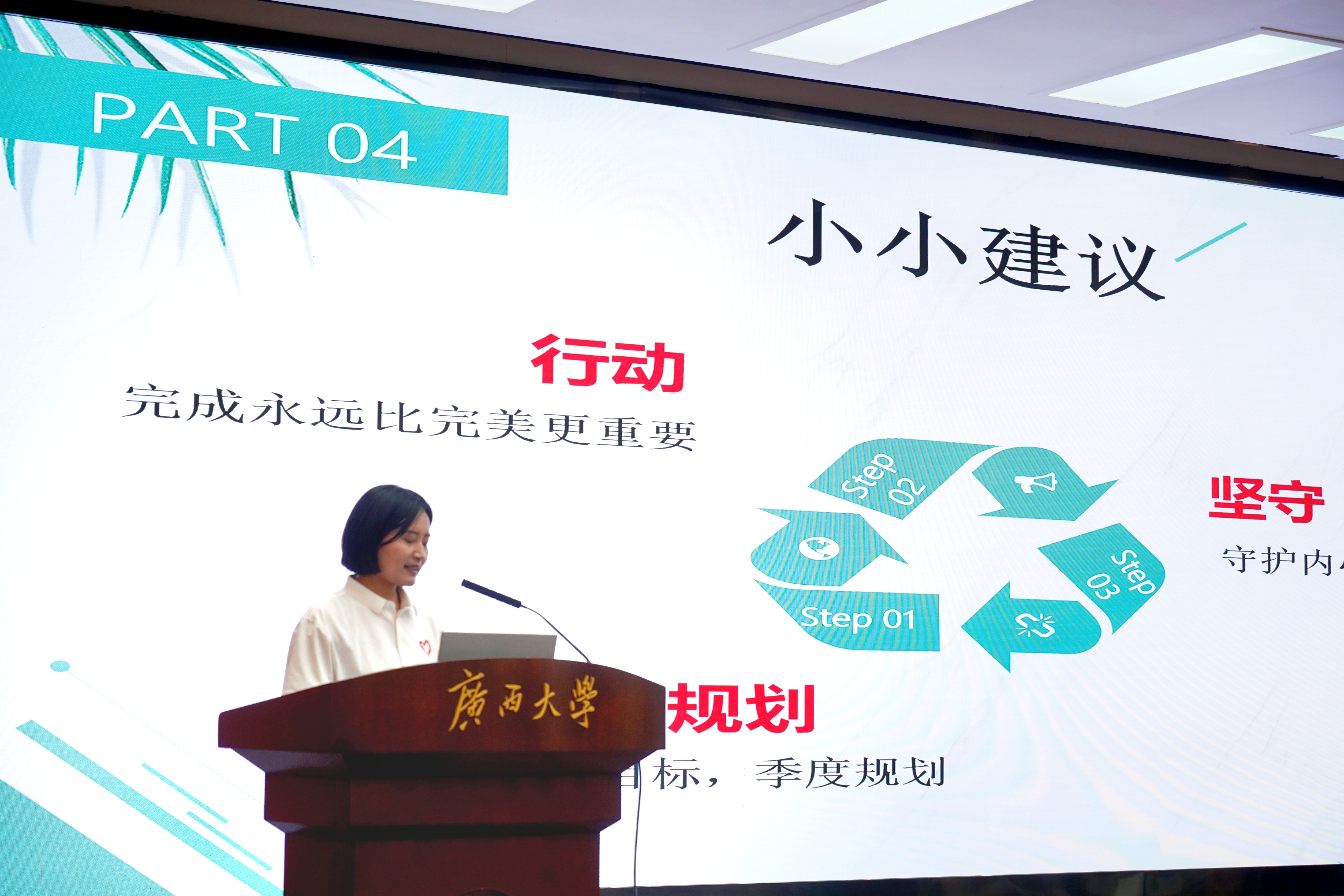宣讲会上,西部计划广西项目办围绕西部计划是什么、为什么选择西部计划、如何报名西部计划、参加西部计划可享受哪些政策保障等方面进行西部计划政策解读,黄艳琴、罗智文、罗海芳、许敏等4名优秀西部计划志愿者代表分别结合服务岗位,分享了参与西部计划的心路历程、实践故事和成长收获,用鲜活感人的亲身经历和服务基层的热情决心向大家发出了“赴西部之约”的邀请。