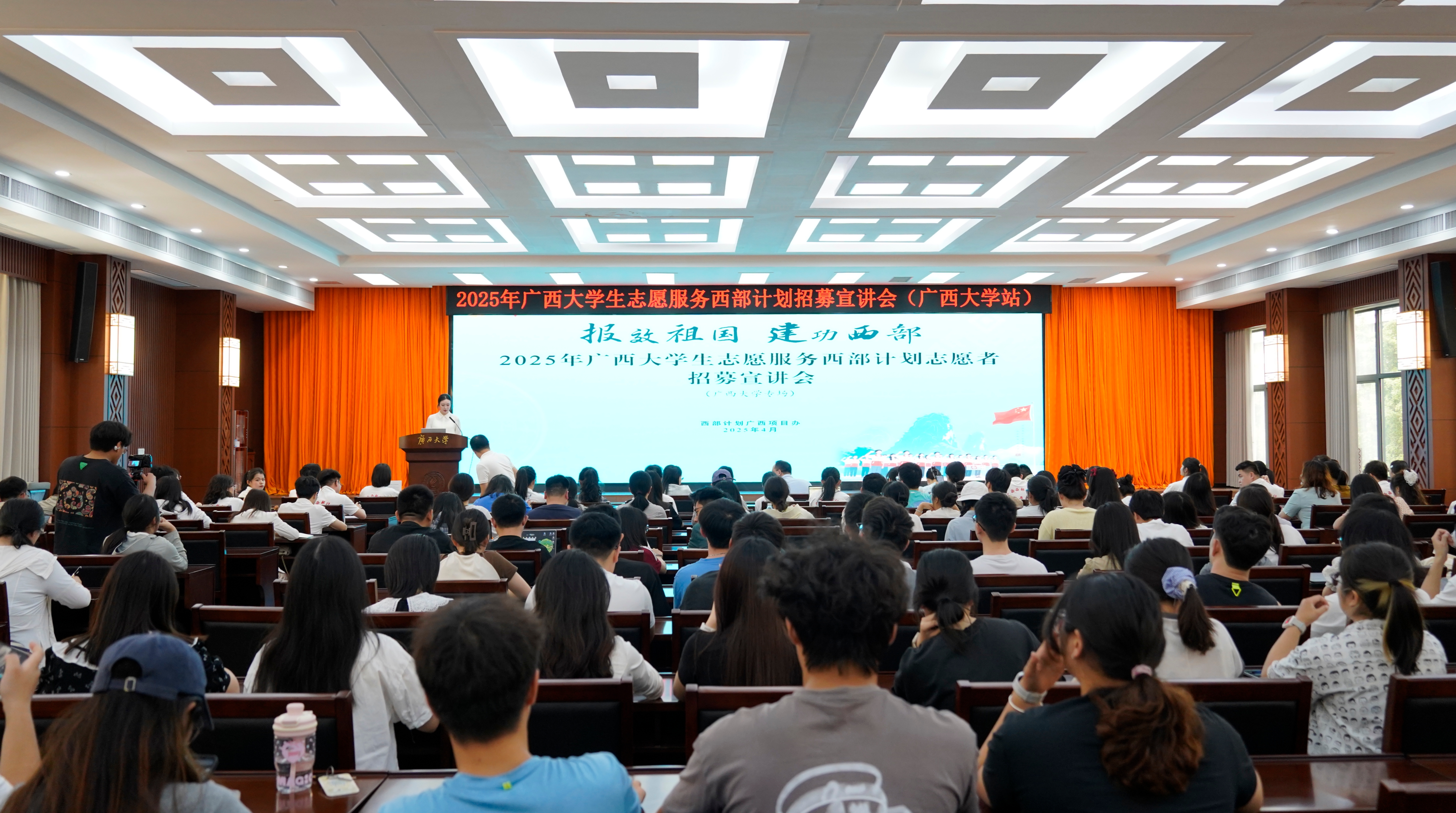 “到西部去,到基层去,到祖国和人民最需要的地方去!” 4月21日上午,2025年广西大学生志愿服务西部计划首场招募宣讲会在广西大学举办,4名优秀的西部计划志愿者向现场300余名大学生分享了各自精彩的服务经历和成长感悟,号召广大青年学子加入西部计划,以实际行动报效祖国、建功西部。