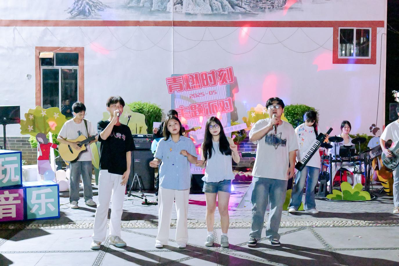 开放式麦克风环节中,乐队弹唱《五十年以后》,深情嗓音获掌声雷动;青年工作者即兴演唱《我在山水资源等你》,优美歌声让观众直呼“再来一曲”;深夜乐队演奏搭配美食摊位,星空下的奶茶干杯、才艺切磋,成为青春记忆的温暖注脚。