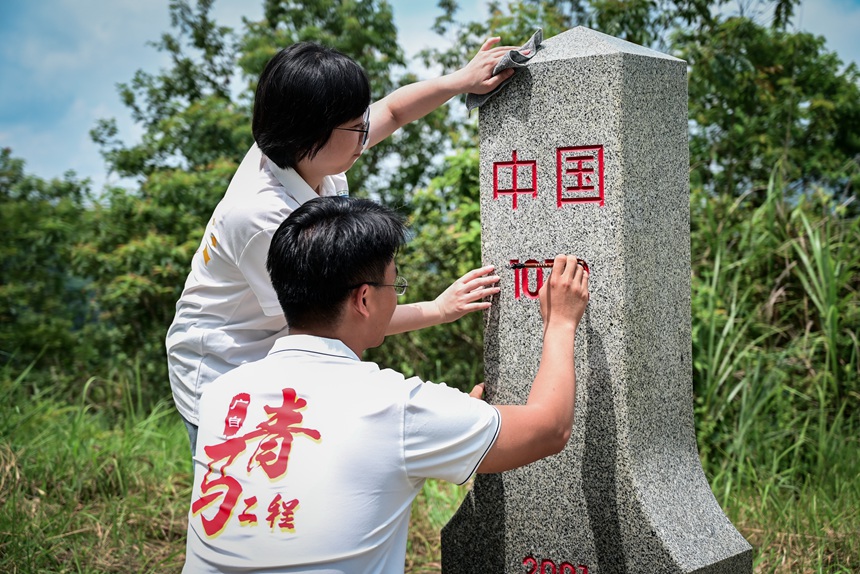 界碑描红。贺鹏飞摄