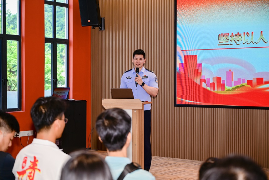 凭祥市公安局王科同志宣讲。李厚良摄
