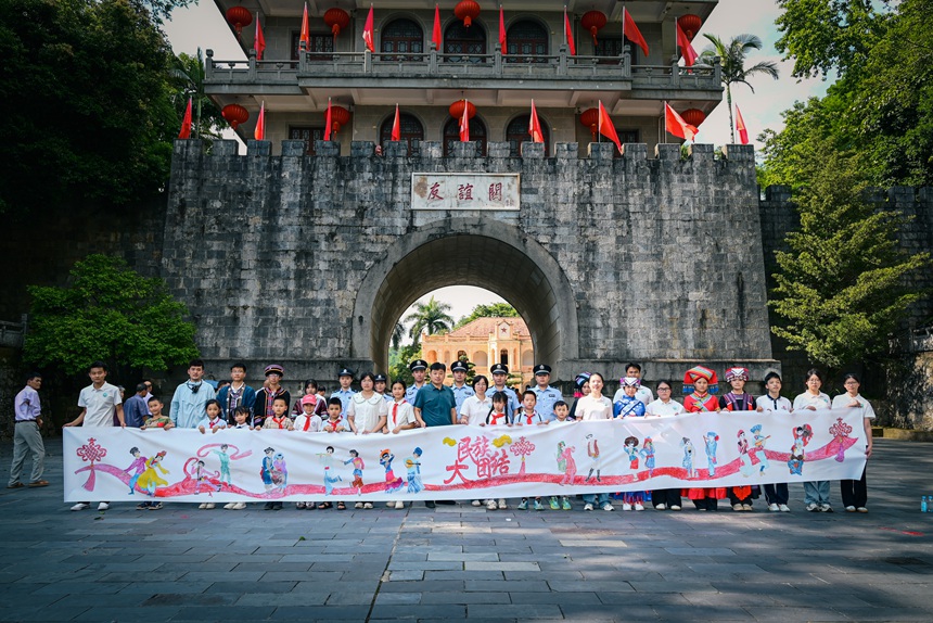 友谊关前共绘民族大团结百米画卷。招荣俊摄
