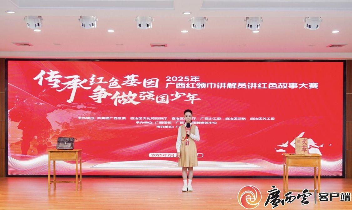 7月24日至25日,2025年广西红领巾讲解员讲红色故事大赛在南宁举办,大赛主题为“传承红色基因 争做强国少年”。本次大赛设小学组和初中组两个组别,共有93名红领巾讲解员参赛。来自全区各地的参赛选手深入挖掘并讲述广西各地的革命文化、文物保护、家乡发展变化故事。