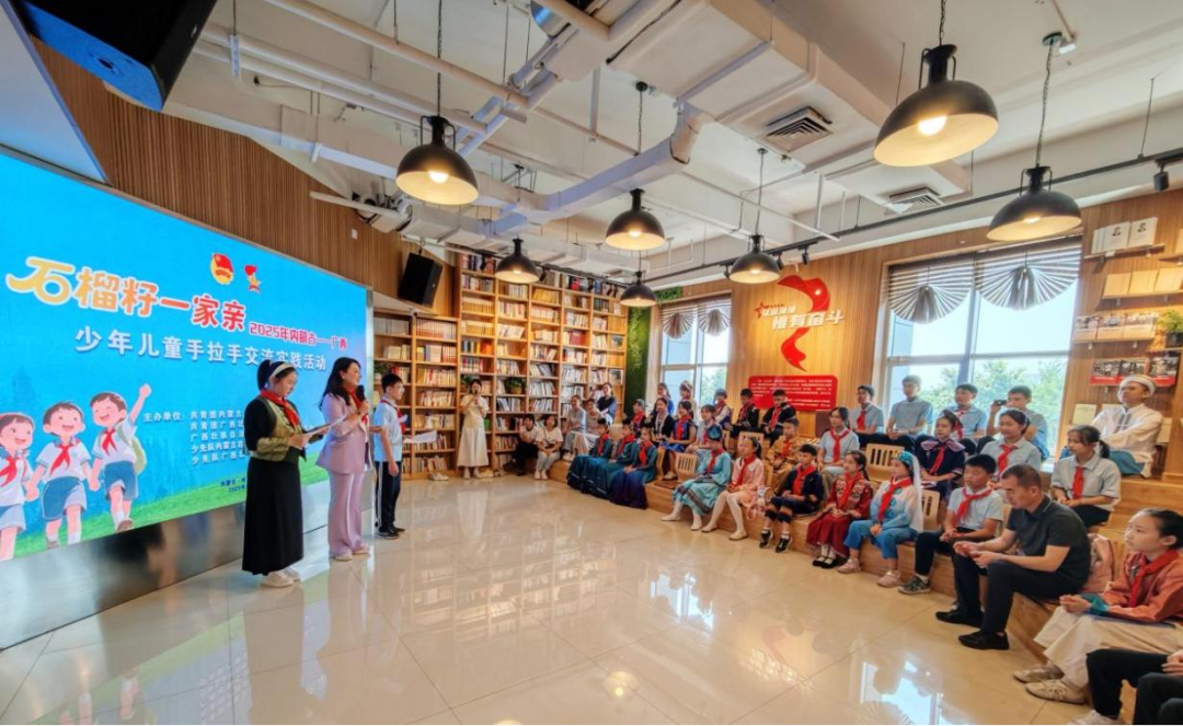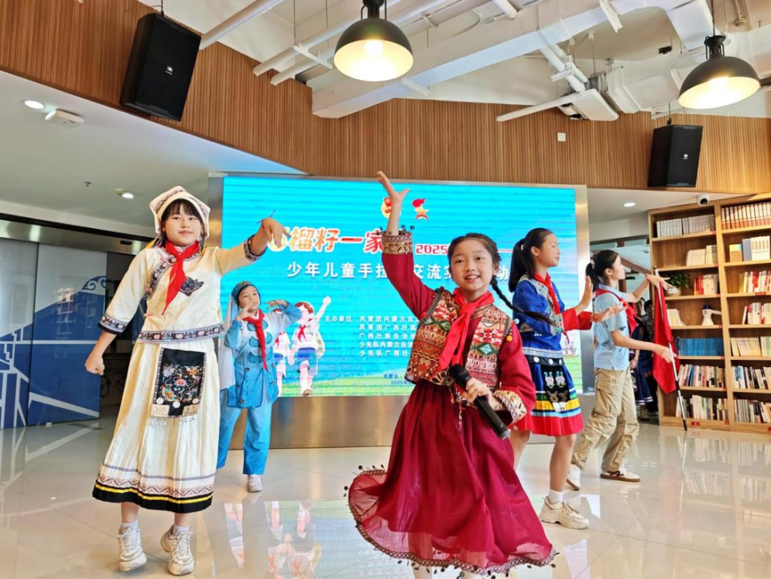 8月22日,共青团广西区委、广西壮族自治区民宗委与共青团内蒙古区委在呼和浩特市共同举办“石榴籽一家亲”2025年广西—内蒙古少年儿童手拉手交流实践活动。来自八桂大地和北疆草原的60余名少先队员,怀着对中华民族多彩文化的向往与对民族团结的真挚情感欢聚一堂。活动以主题队课铸牢中华民族共同体意识,以民族歌舞搭建沟通桥梁,以非遗手工艺体验深化文化认同,通过沉浸式互动促进两地青少年广泛交往、全面交流、深度交融,让“中华民族一家亲”的和美画卷在少年儿童心中生动铺展。
