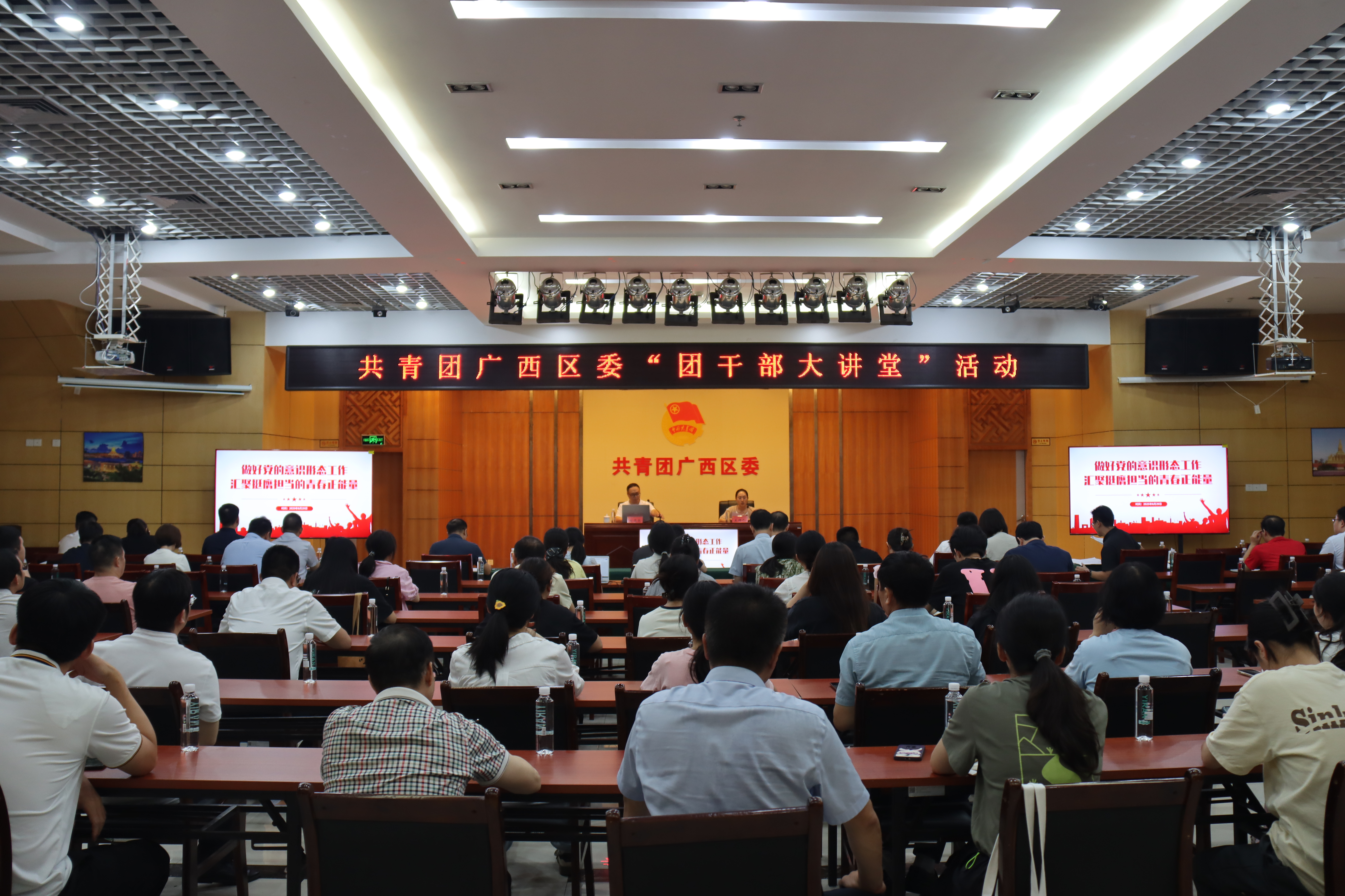 活动中共青团广西区委宣传部部长刘志尧同志为机关和直属单位干部作《做好党的意识形态工作 汇聚挺膺担当的青春正能量》主题分享,从意识形态工作科学内涵、涉团涉青领域的意识形态风险和挑战以及共青团意识形态工作要求等三个方面进行工作分享。