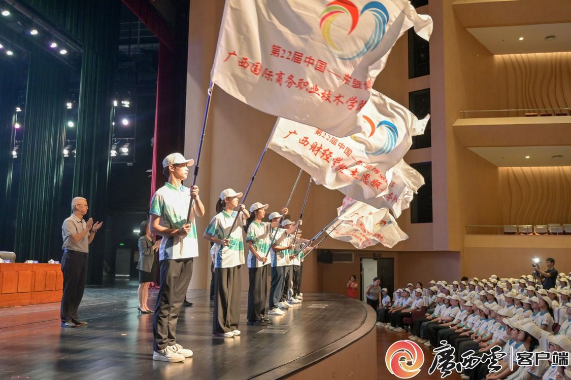 出席上岗仪式的相关负责同志为广西大学、广西医科大学、广西民族大学、南宁师范大学、广西财经学院、广西职业师范学院、广西国际商务职业技术学院、广西民族大学相思湖学院志愿服务队授旗。上岗仪式结束后,全体志愿者开展线下集中培训,内容涵盖东盟及东博会和峰会概况、大型赛会志愿服务规范与沟通技巧、志愿者礼仪和形象管理、大型赛会救护技能知识等。授课老师通过理论讲解、案例分析、实操演练等多样化形式,全方位提升志愿者服务水平与责任意识,为高质量、高效率开展志愿服务筑牢基础。