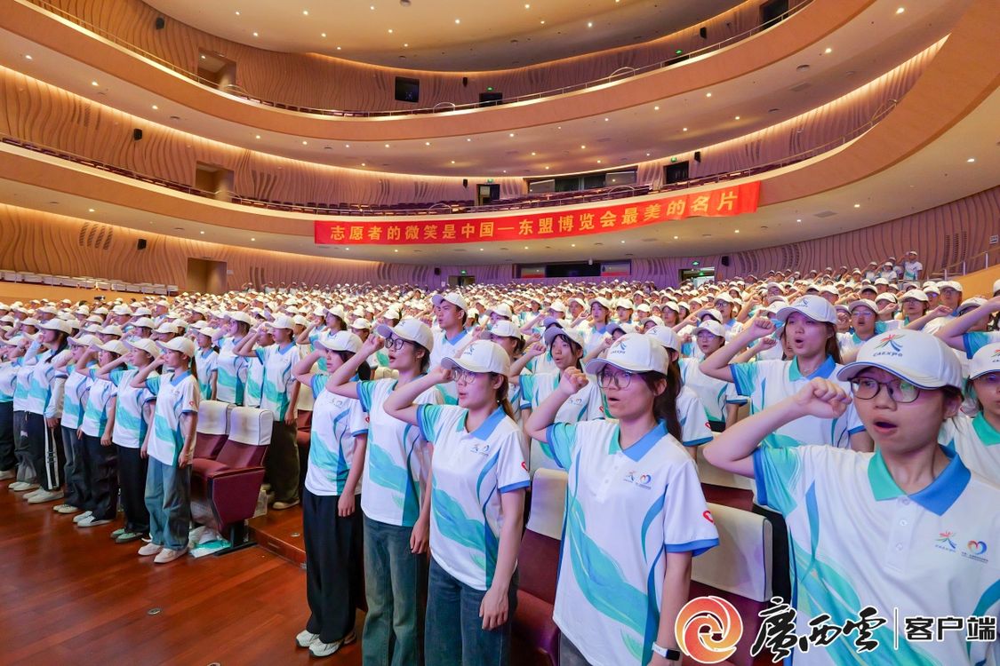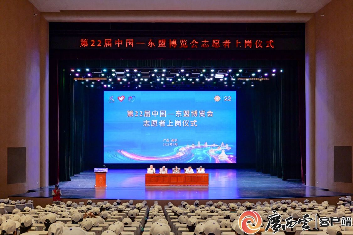 2025年9月7日,第22届中国—东盟博览会志愿者上岗仪式在广西大学举行。共青团广西区委、广西博览局、自治区教育厅和广西大学相关负责同志,以及来自8所驻邕高校的863名东博会志愿者“小青芒”参加上岗仪式。