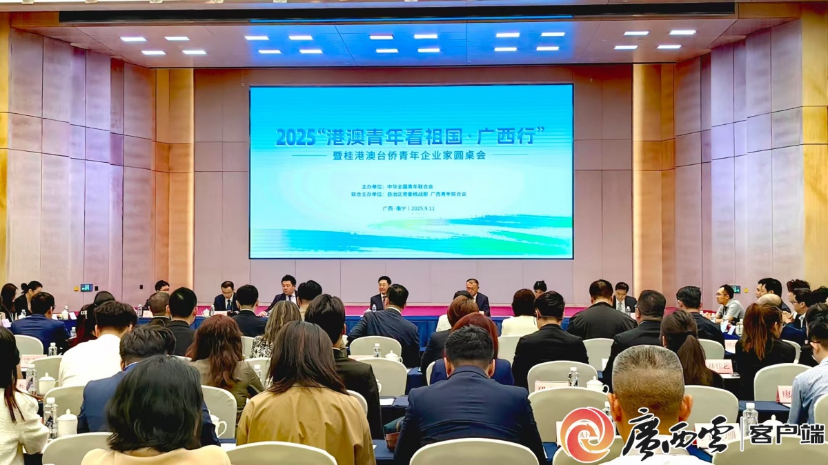9月11日,“港澳青年看祖国・广西行”暨桂港澳台侨青年企业家圆桌会在南宁举行。70名港澳台侨青年代表与20名广西青联委员、行业精英齐聚一堂,共话同胞情深、共商合作良策、共筑发展愿景。