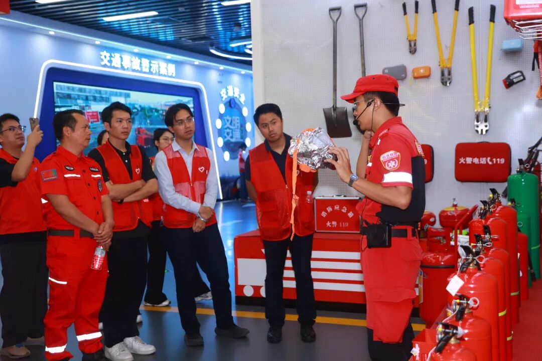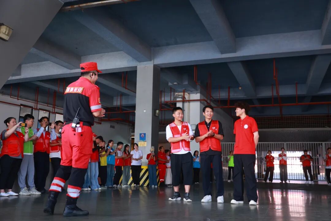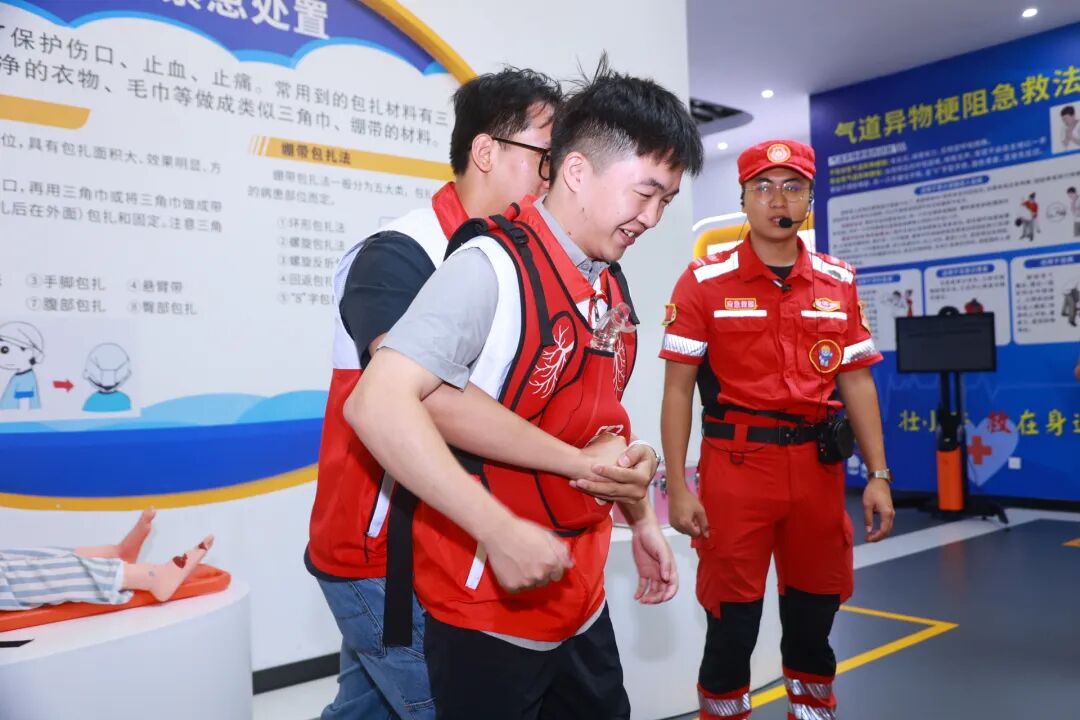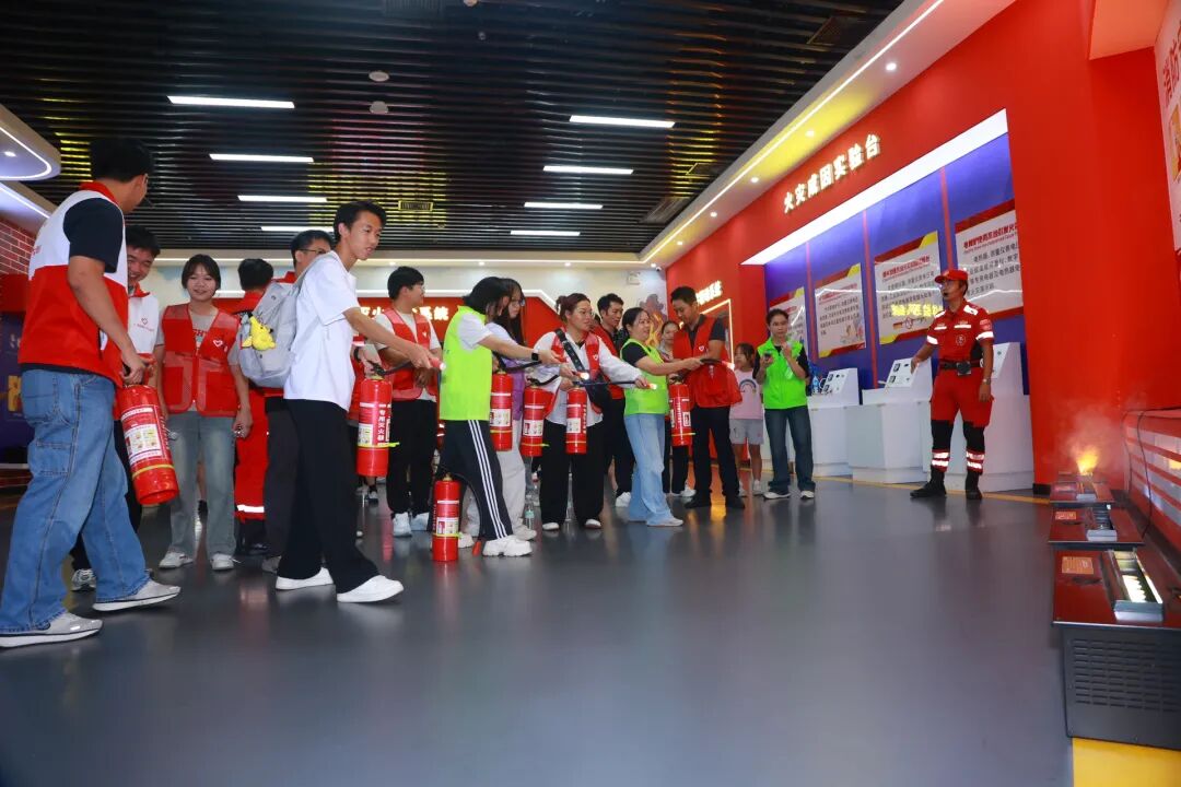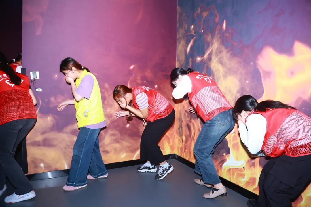 场馆提供的各类场景应急模拟演练是本次活动的“硬核”内容。在“壮小安”侯兵总教官的带领下,骨干们系统学习应急救援设备操作规范与安全防护知识,随后分组开展火灾逃生、伤员转运、心肺复苏等场景模拟演练。志愿者骨干们在分工协作中熟练处置流程,切实提升实战能力。