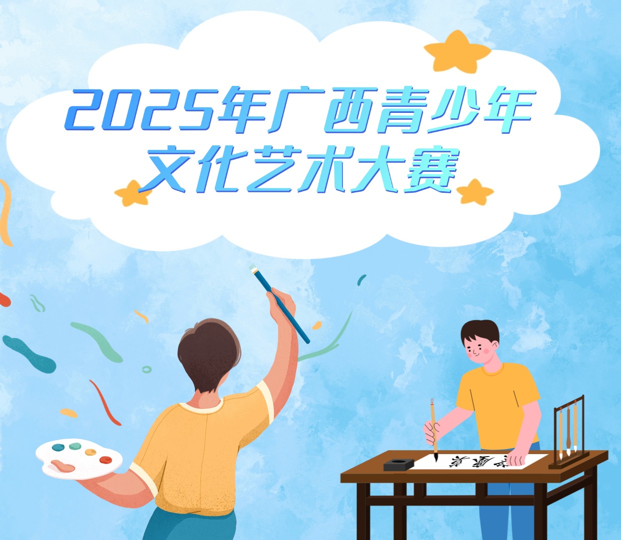 为深入学习贯彻党的二十大和二十届历次全会精神,全面学习贯彻习近平总书记关于青年工作的重要思想和关于广西工作论述的重要要求,坚持以铸牢中华民族共同体意识为主线,落实立德树人根本任务,持续发挥文化艺术促进青少年健康成长的重要作用,广西青少年活动中心(广西志愿者指导中心)面向青少年公开征集2025年广西青少年文化艺术大赛(以下简称“大赛”)作品,现将具体事宜公告如下。