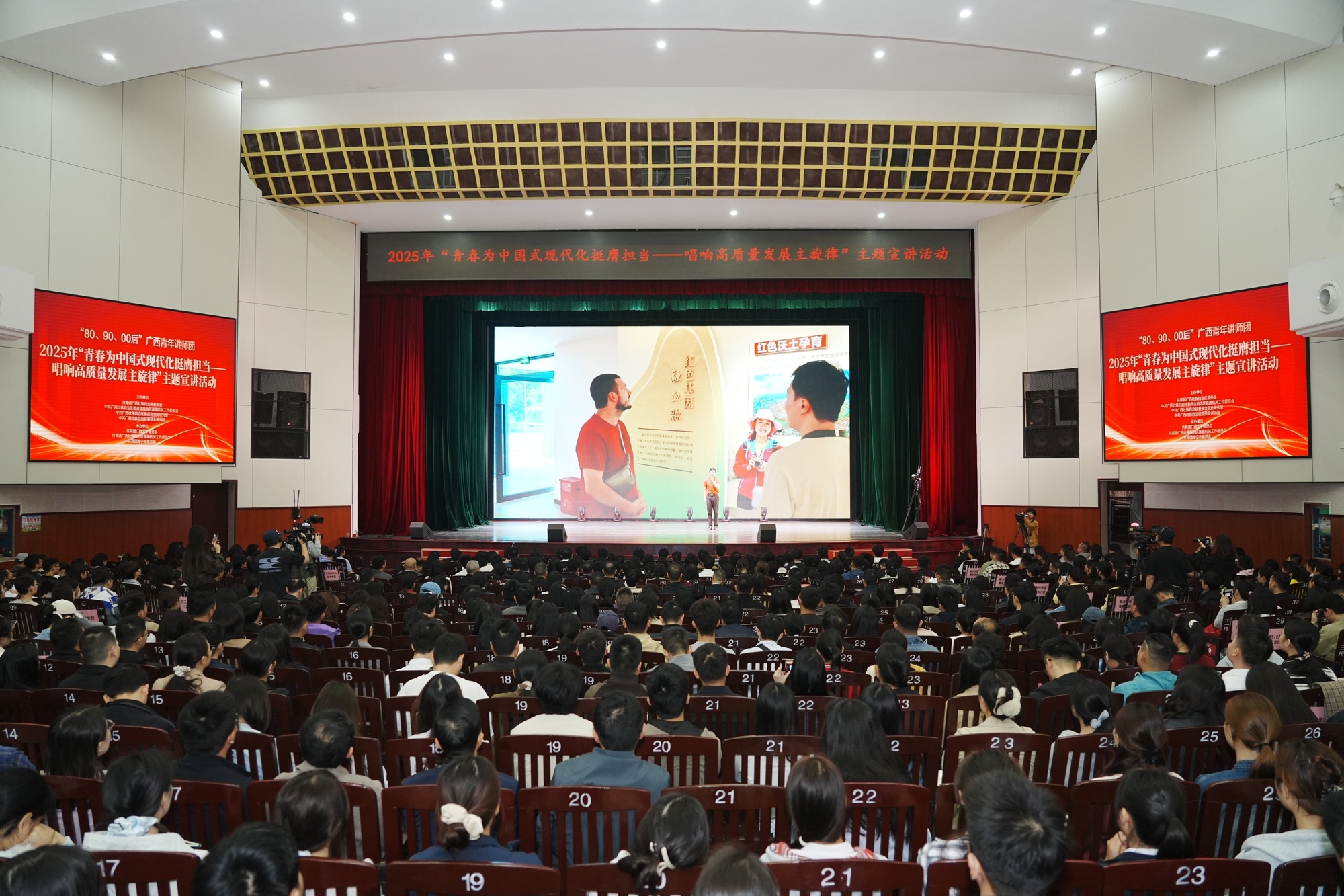 为深入学习宣传贯彻党的二十届四中全会精神,用“青言青语”面向广大青年讲好党的创新理论,11月10日,“80、90、00后”广西青年讲师团“青春为中国式现代化挺膺担当——唱响高质量发展主旋律”主题宣讲活动在广西大学举办。“80、90、00后”广西青年讲师团代表,广西壮族自治区直属机关、高校、国企、南宁市团干部代表,“青年马克思主义者培养工程”骨干代表以及新兴领域青年代表等1000余人参加活动。
