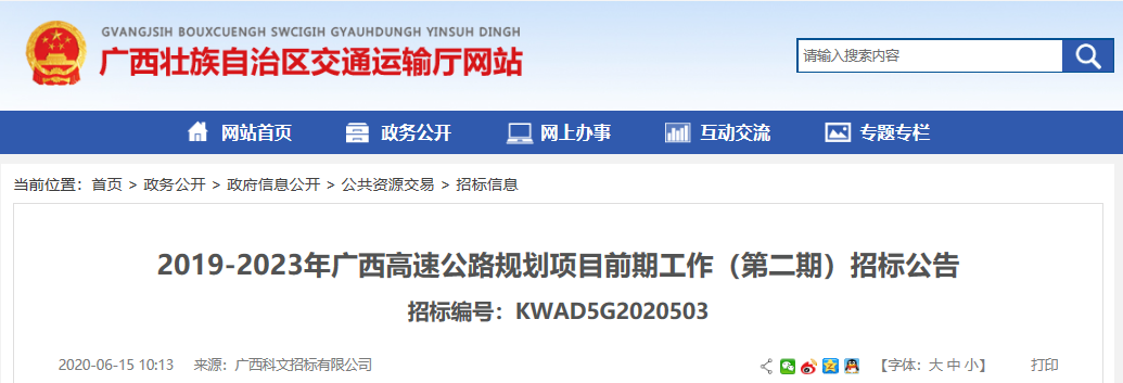 ▲广西壮族自治区交通运输厅网站截图