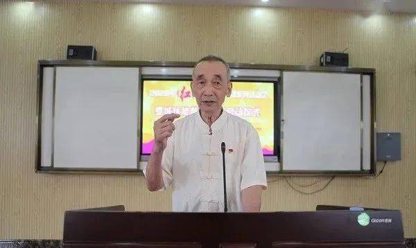 图为自治县政协原主席蒙绍业在为大家讲述革命故事