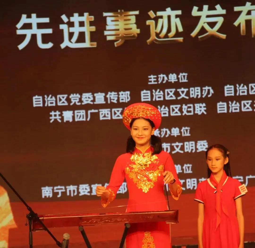 “新时代好少年”曾蓓琲、林子涵与中国戏剧梅花奖获得者、南宁市民族艺术研究院梁素梅老师同台献艺