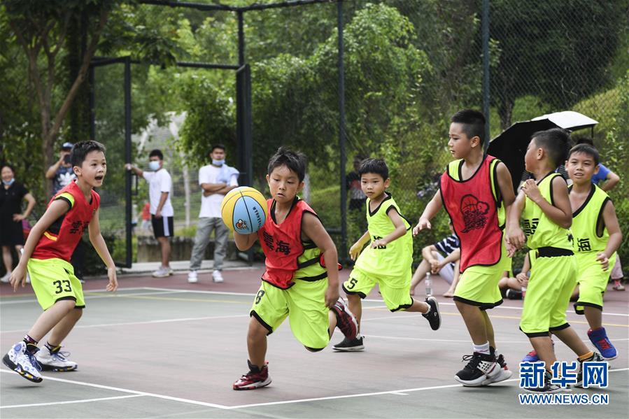 8月8日,小朋友们参加第十二届广西体育节篮球项目比赛。