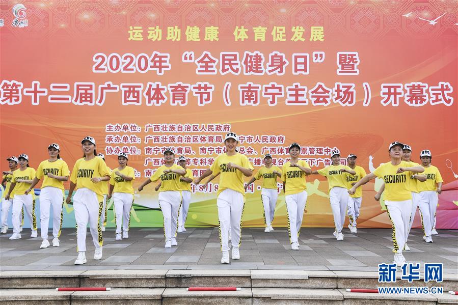 8月8日,市民在第十二届广西体育节南宁主会场表演曳步舞。