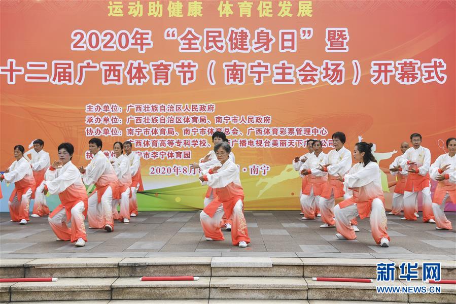 8月8日,市民在第十二届广西体育节南宁主会场表演太极拳。