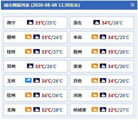 今天白天,全区阴天大部有阵雨或雷雨,其中防城港、钦州、北海、崇左、百色等市局部大雨到暴雨。