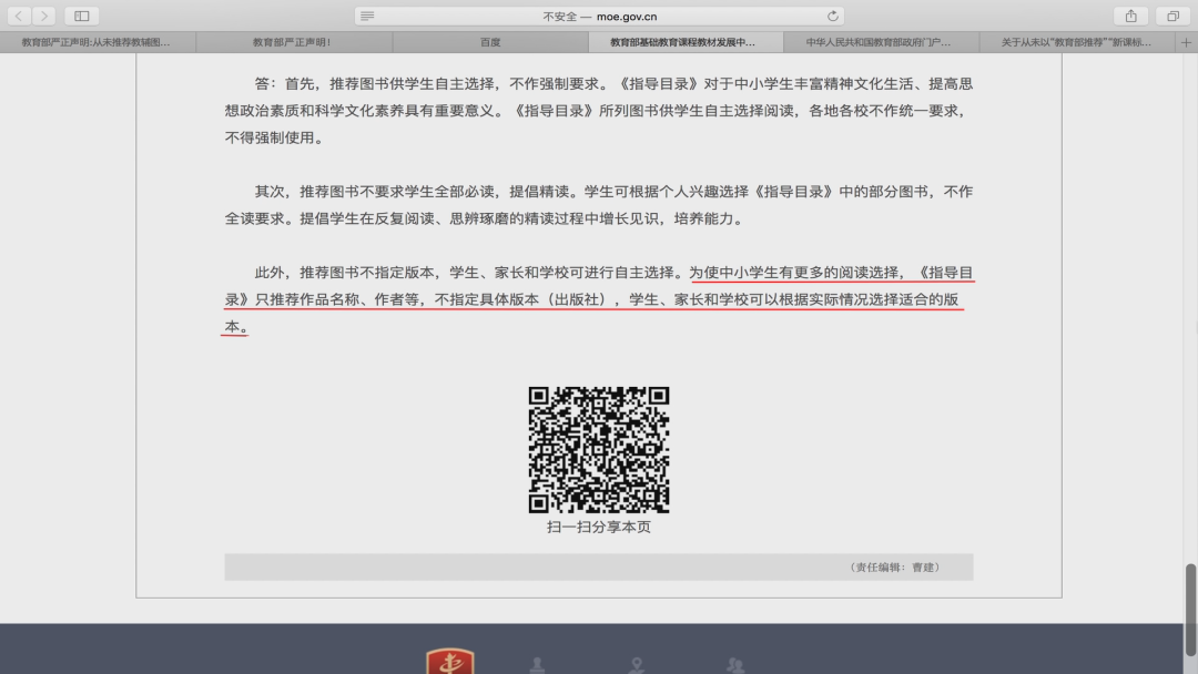 对此现象,教育部进行严正声明,称教育部从未以“教育部推荐”“新课标指定”“统编教材必读书目、推荐书目”“统编教材延伸阅读”以及类似名义出版、推销有关图书。请各地、学校及相关人员提高警惕,谨防上当。今后如遇到类似情况,请直接向当地市场监管部门举报。
