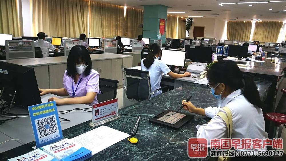 ▲8月7日,今年毕业的银同学到南宁市人才市场办理毕业报到、求职登记等事项,所办事项“打包”一站办结。南国早报记者 刘冬莲摄