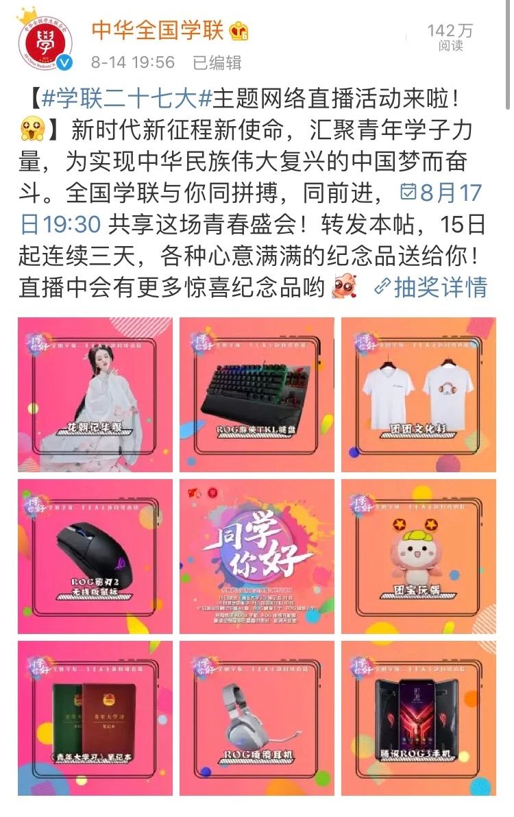 在大会预热阶段,我们发起#学联二十七大#相关话题,参与也有惊喜纪念品!
