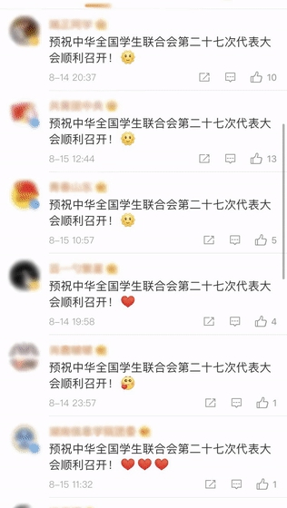 各位同学对大会祝福满满~预祝中华全国学生联合会第二十七次代表大会顺利召开!