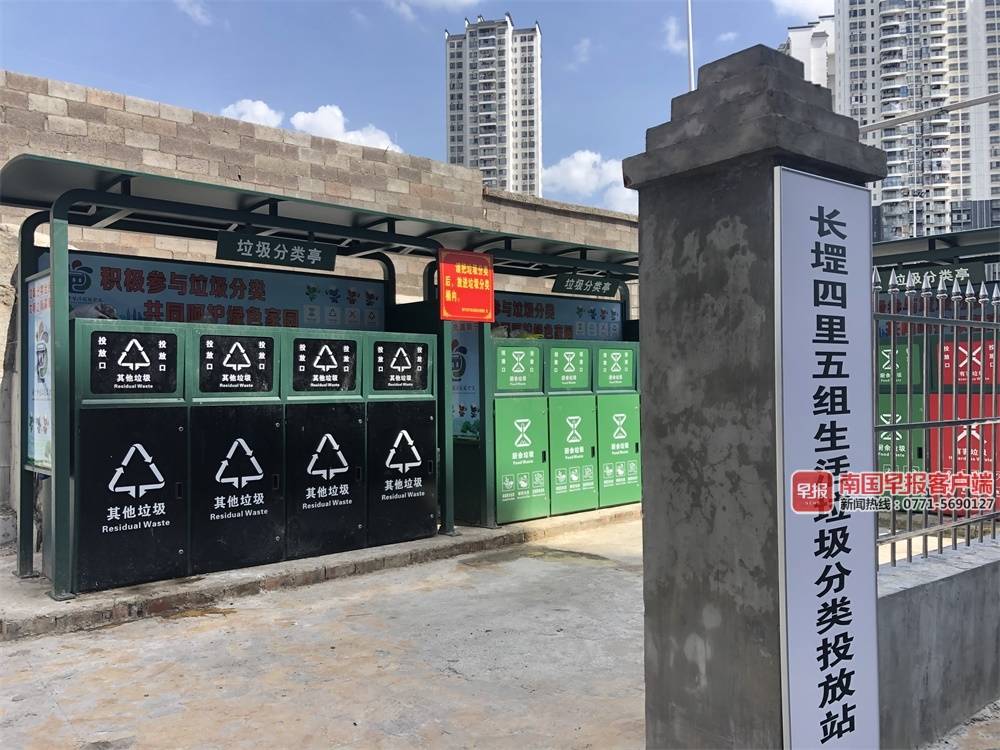 ▲南宁市长堽四里五组生活垃圾分类投放站。本文图片均为 南国早报客户端记者 苏华 摄
