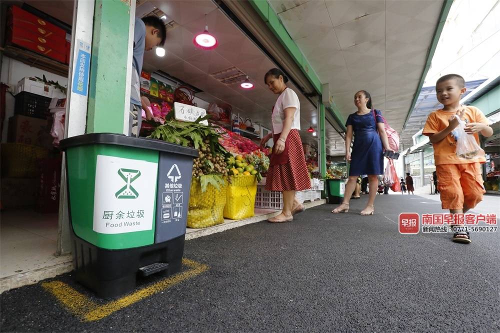 ▲南宁市各农贸市场的垃圾桶已经进行垃圾分类。