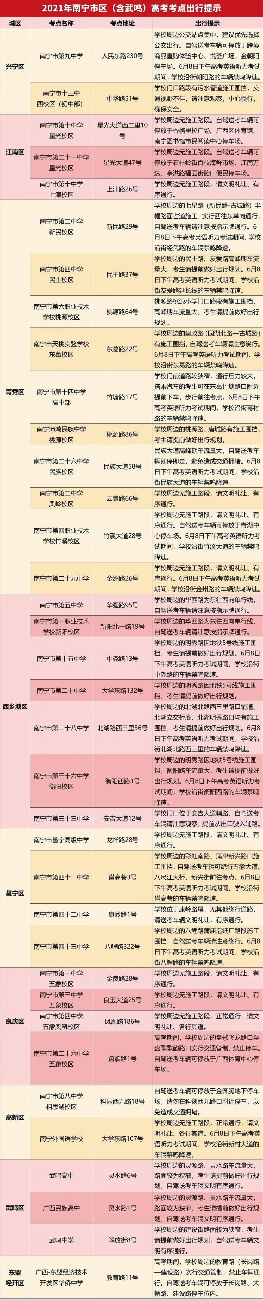 下面这份高考考点出行提示