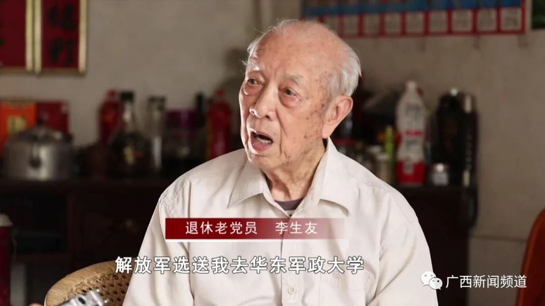 退休老党员 李生友:1942年(入伍),解放军选送我去华东军政大学,学习一年回来参加两广纵队,是共产党救了我,我才有现在的一切。