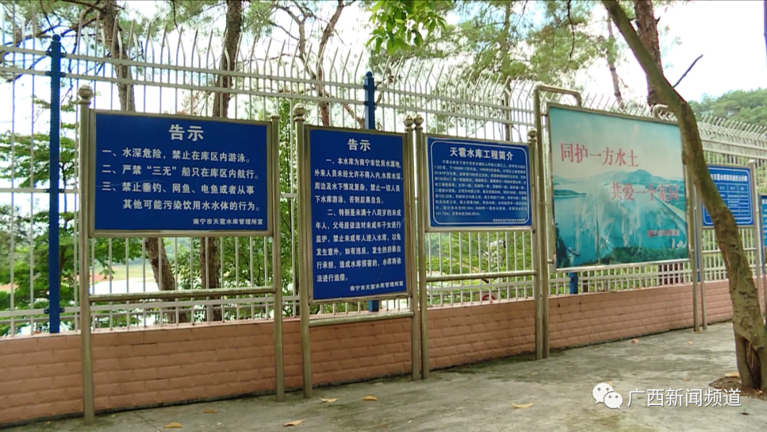 南宁市天雹水库管理所副主任 韦学锋:在重点区域设立“一杆一哨一圈一绳”这些必要的救生设施,群众出入多的地方,设置宣传栏,警示牌这些宣传标识标语。