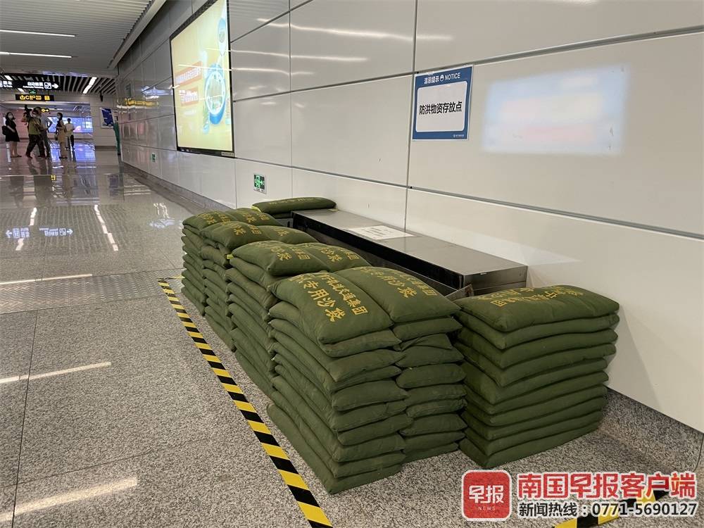 大量的雨水从外面流入地铁站内,该怎么办?南宁轨道交通集团运营分公司安全监察部部长潘永剑称,针对大暴雨等相关情况,南宁地铁设置了专门的运营防洪防涝专项应急预案,以及区间线路积水专项应急预案,如果气象部门发出相关预警,尤其是汛期期间,工作人员会在地铁沿线加强监管,加强对周边情况的密切巡视。目前南宁地铁在各个扶梯、楼梯设置了水泵,如果有雨水涌入,除了用设置的防洪挡板和沙袋进行防洪外,还会利用水泵及时排水。