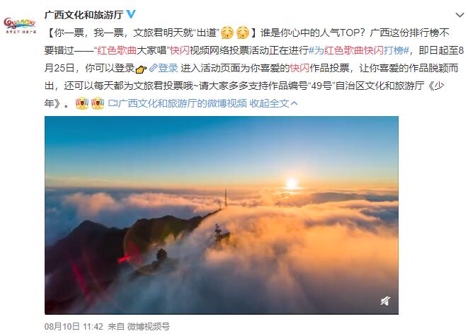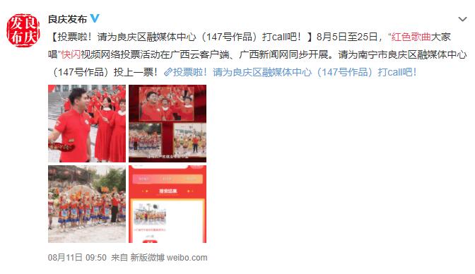 “谁是你心中的人气top?广西这份排行榜不要错过!”“投票啦!快来为x号作品打call吧!”由自治区党委党史学习教育领导小组办公室主办、广西日报-广西云协办的“感党恩 跟党走”红色歌曲大家唱快闪视频网络投票活动正在火热进行中,广西各地各部门为让选送作品脱颖而出,铆足了劲进行各种花式拉票,呼吁广大网友踊跃参与投票。截至8月20日10时,网络投票活动参与作品共391部,活动页面访问量894.2万,投票人数106.4万,投票数759.4万。
