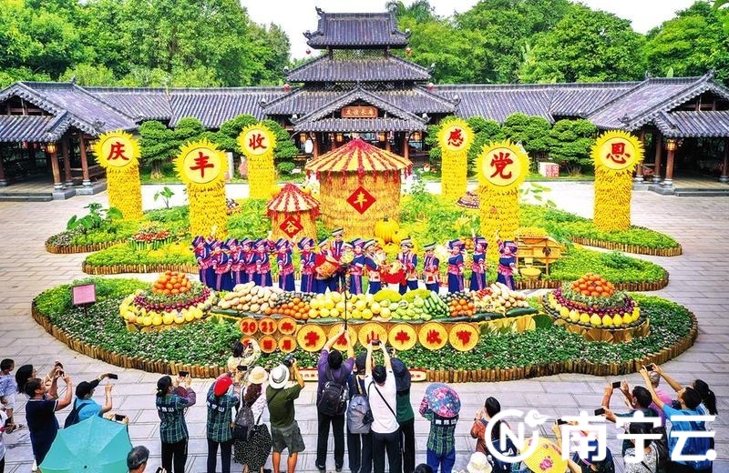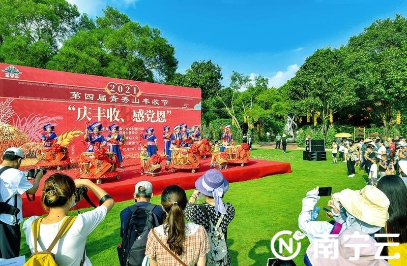 9月19日,青秀山风景区东盟友谊园内响起阵阵喜庆的锣鼓声和欢庆丰收的歌声,市乡村振兴局和南宁青秀山风景区管委会共同主办的第四届青秀山丰收节在此开幕。今年的丰收节主题为“庆丰收、感党恩”,系列活动将持续至10月23日,包括“丰收园林景观展示”“果蔬、农作物及农具展示”“载歌载舞庆丰收”“名特优农副产品展销会”“县区主题日”等,让市民游客在轻松愉悦的氛围中一同感受丰收的喜悦心情。