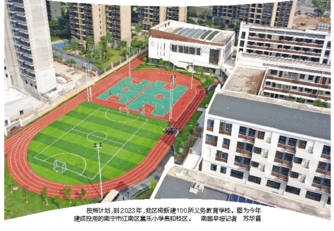 按照计划,到2023年,我区将新建100所义务教育学校。图为今年建成投用的南宁市江南区富乐小学贵和校区。