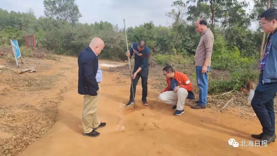 1月5日,为了进一步了解新发现的文化遗产,北海市博物馆考古人员来到勘探现场。