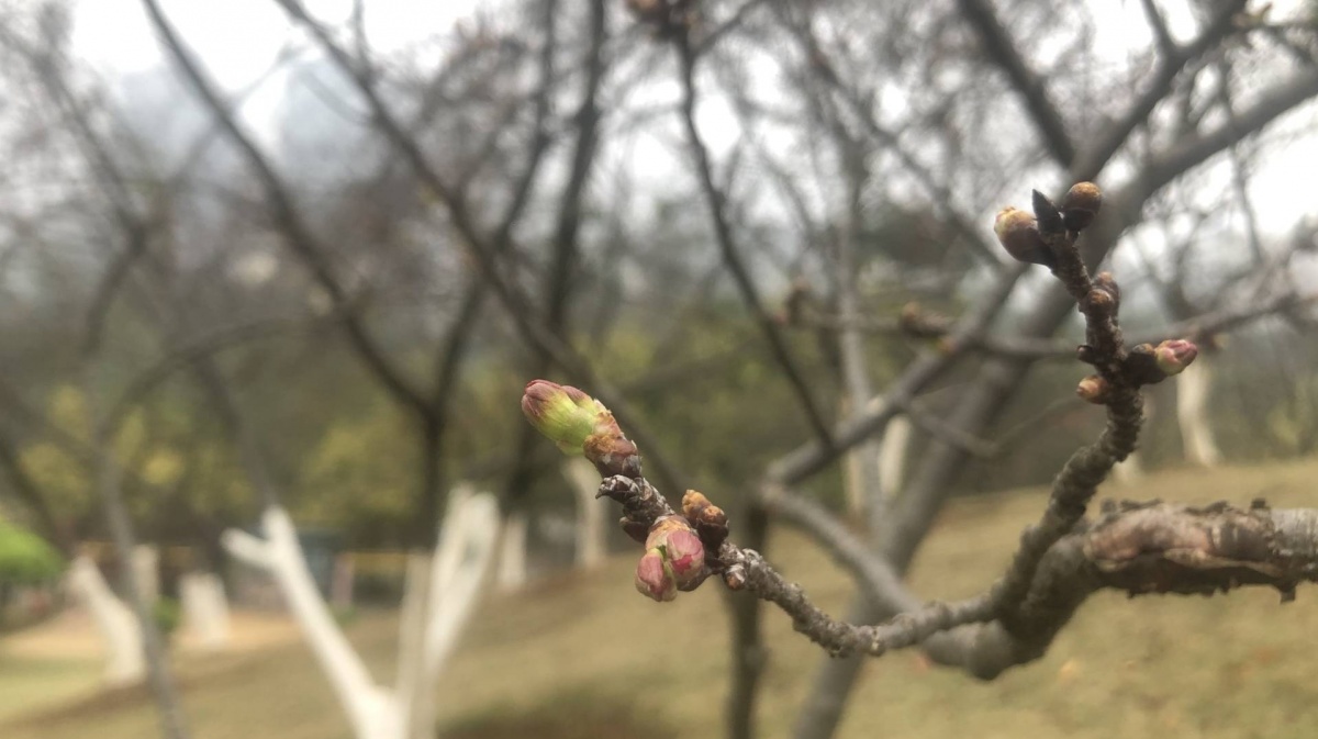 春节到石门公园观赏樱花,是许多市民的打卡项目。不过,今年受低温阴雨天气影响,石门公园的樱花目前还是花蕾初现的状态,春节期间恐难看到樱花烂漫的景象。