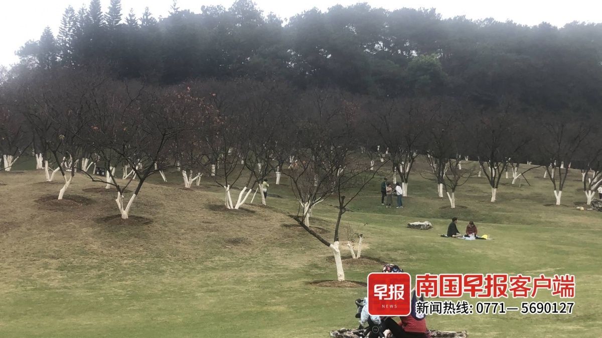 今年的樱花虽然花蕾冒得早,但迟迟没绽放。公园技术人员解释说,这与近期南宁天气多低温阴雨有关,预计该园的樱花要到2月中下旬才进入最佳观赏期。